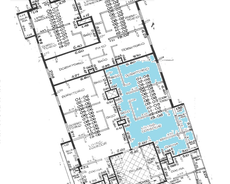 Complejo de viviendas compuesto por Pb + 13 pisos, con 7 unidades por planta.