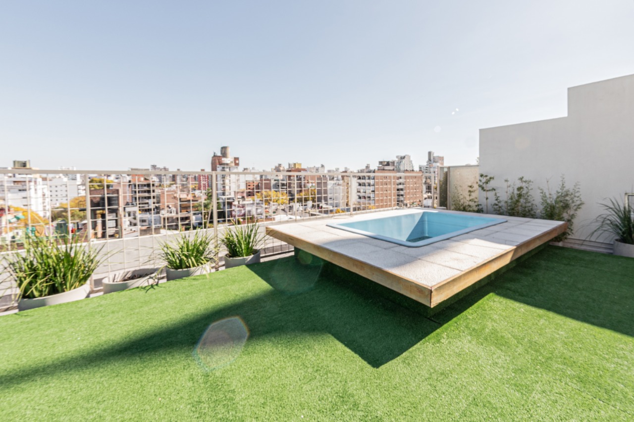 En la terraza se encuentra la pileta, deck, SUM con parrillero y baños.