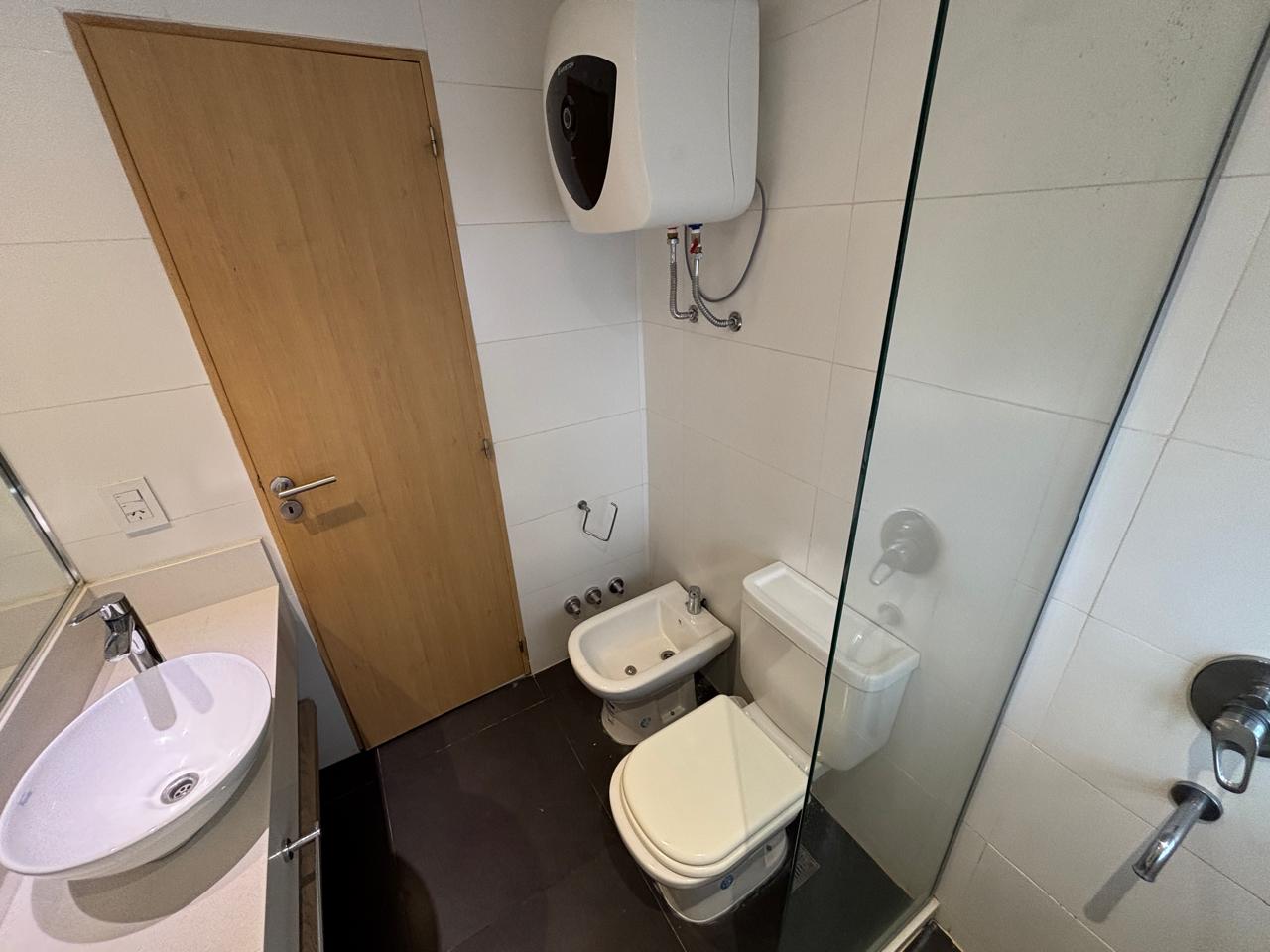 Piso flotante de alto tránsito en todo el departamento, a excepción de cocina y baños.