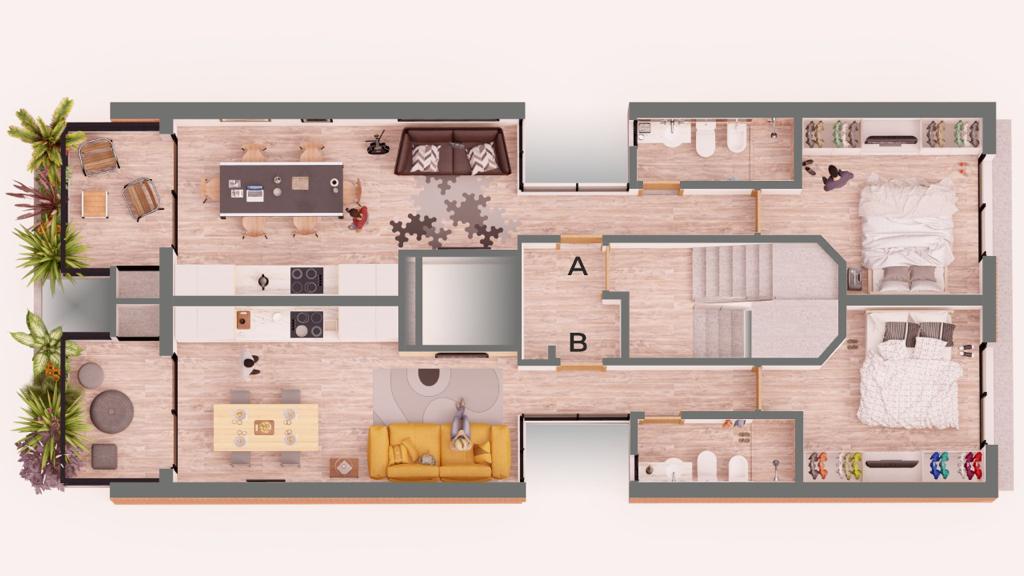 Pb + 6 pisos con dos unidades de 1 dormitorio por piso.