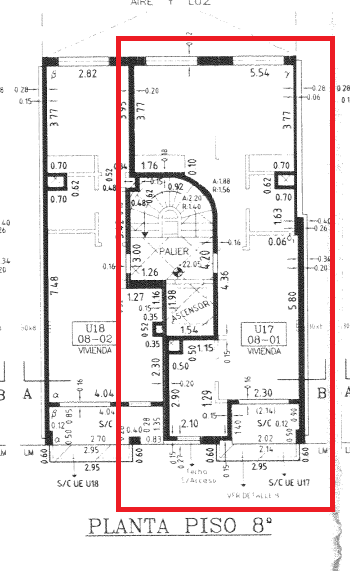 Edificio compuesto por Pb + 9 pisos, con 2 unidades por planta.