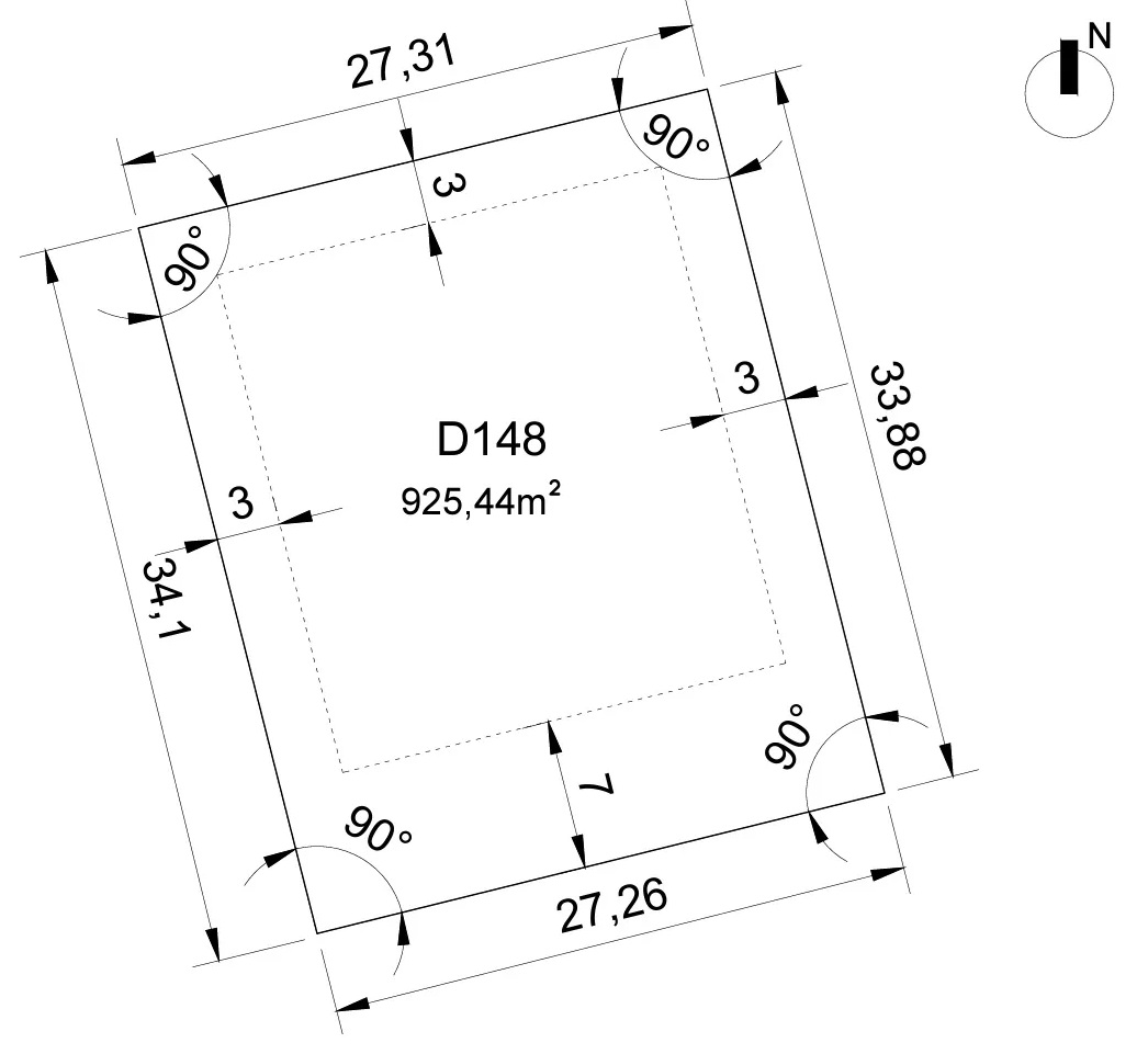-Medidas: 27 mts. de frente por 34 mts. de fondo.