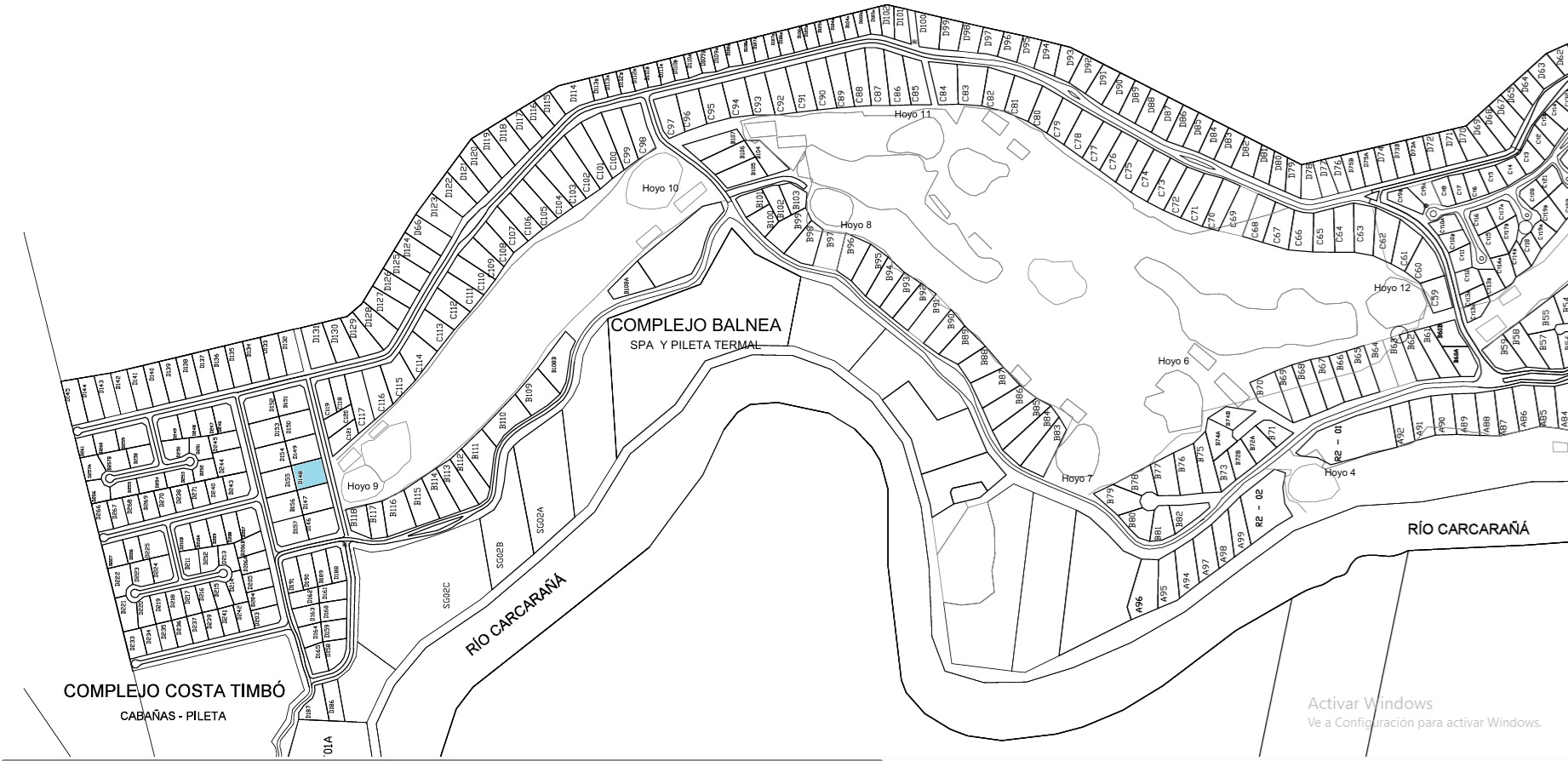 El área residencial (viviendas y cancha de golf), esta dividida en 190 lotes, que van de 600 a 14.000 m2.