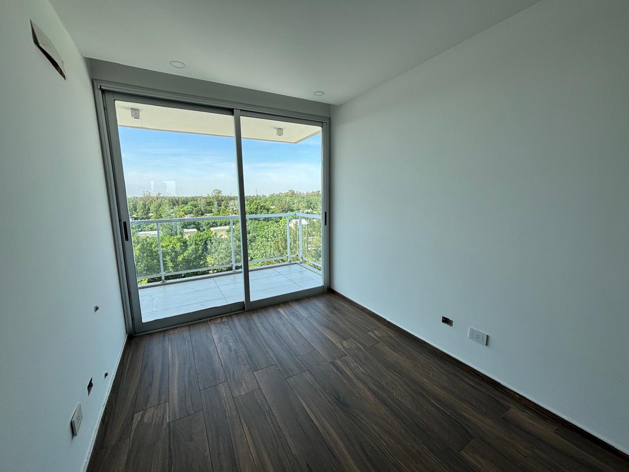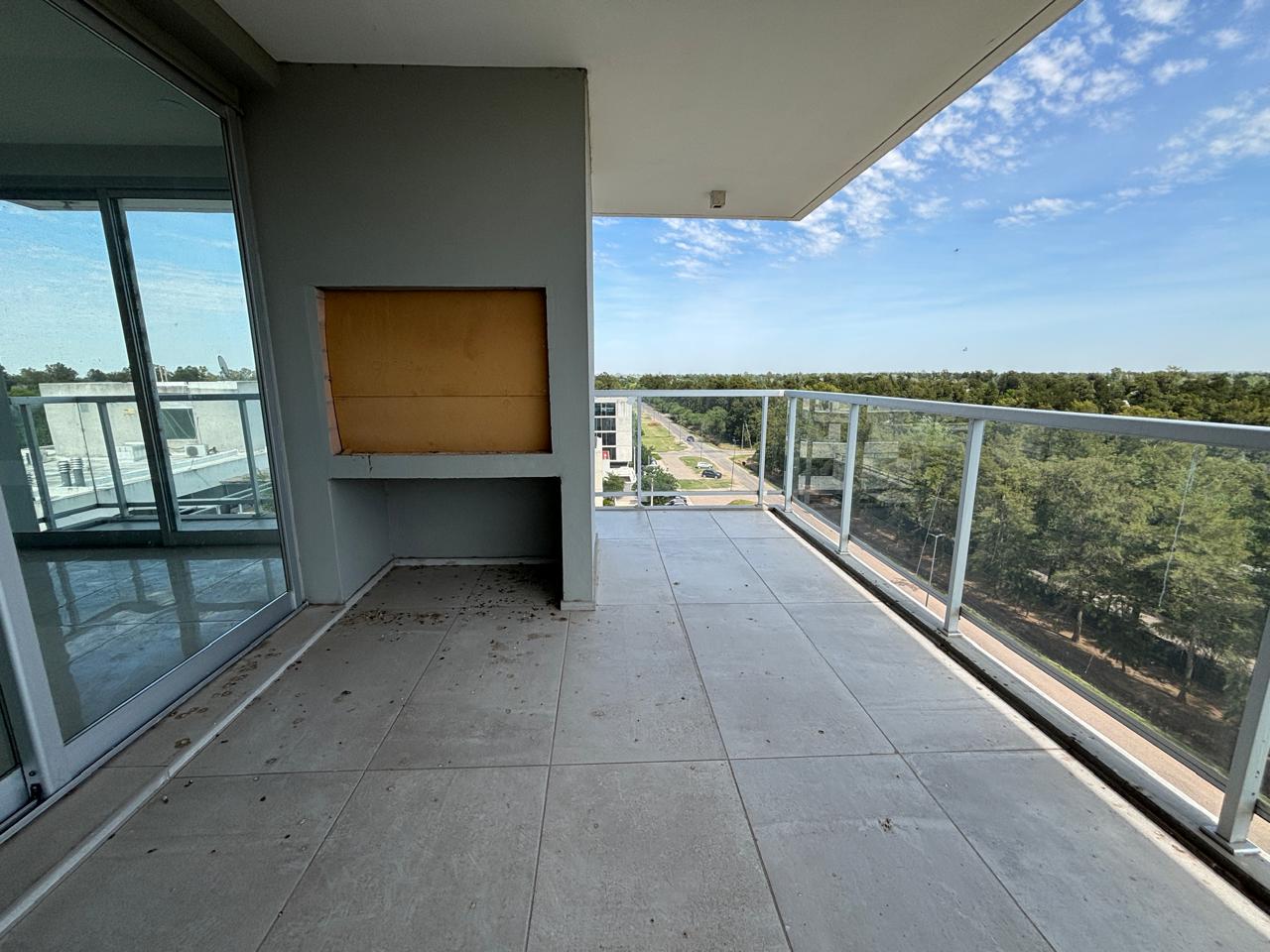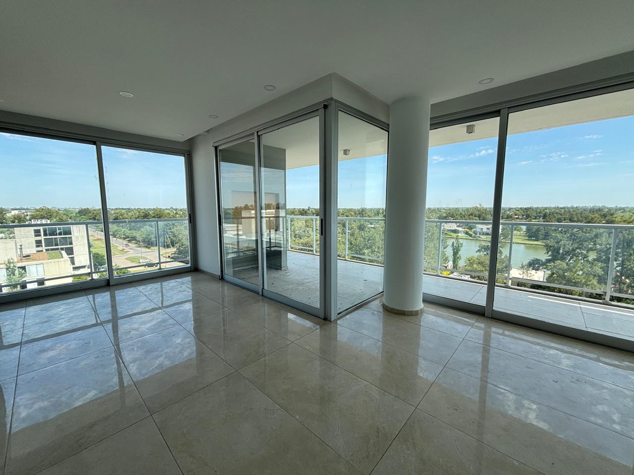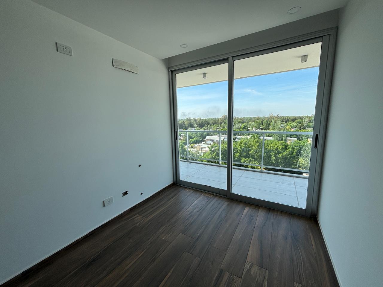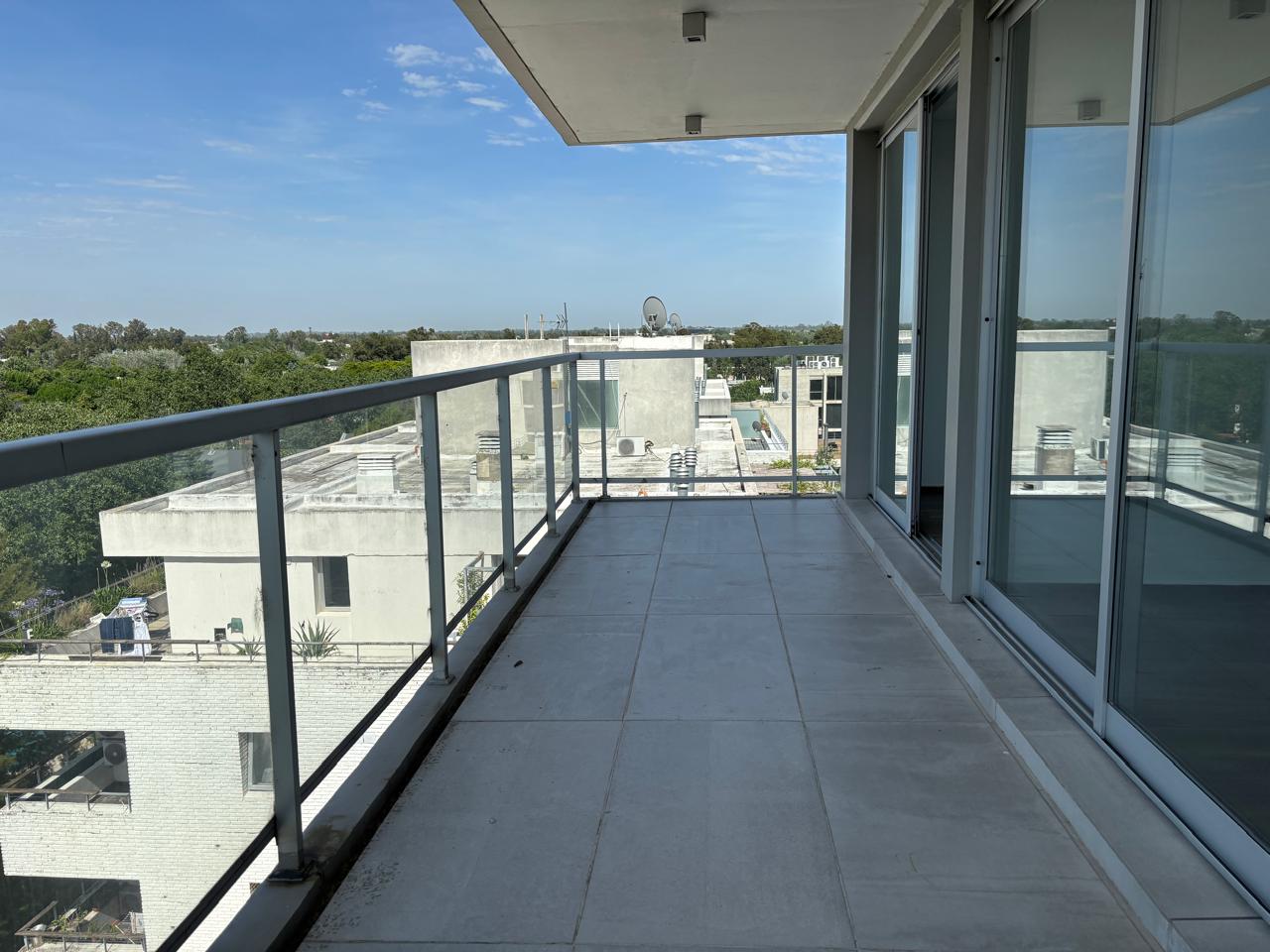 Departamento semipiso, externo con amplio balcón con parrillero orientado al Norte. Vista completamente despejada mirando al barrio cerrado Aldea Lago.
