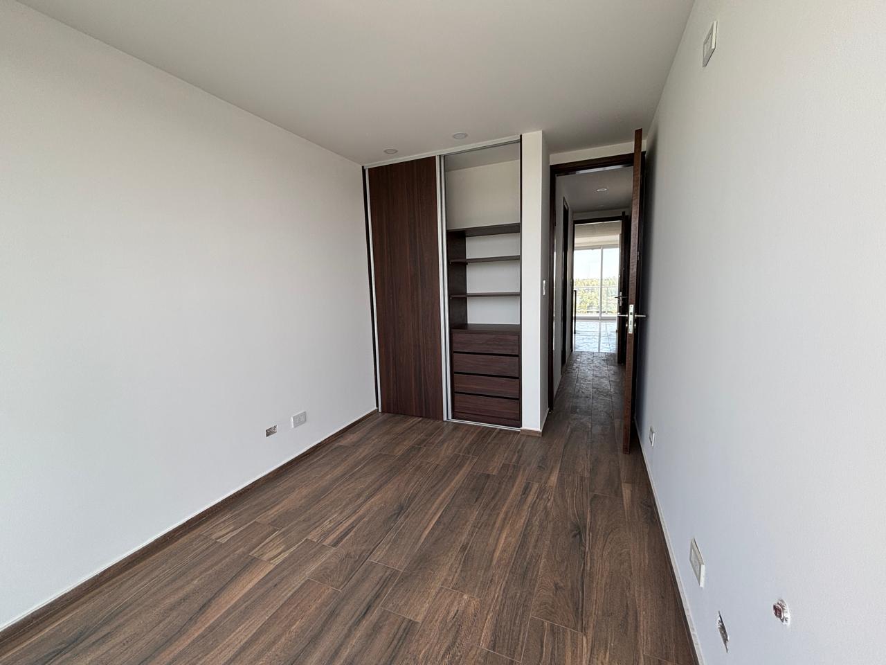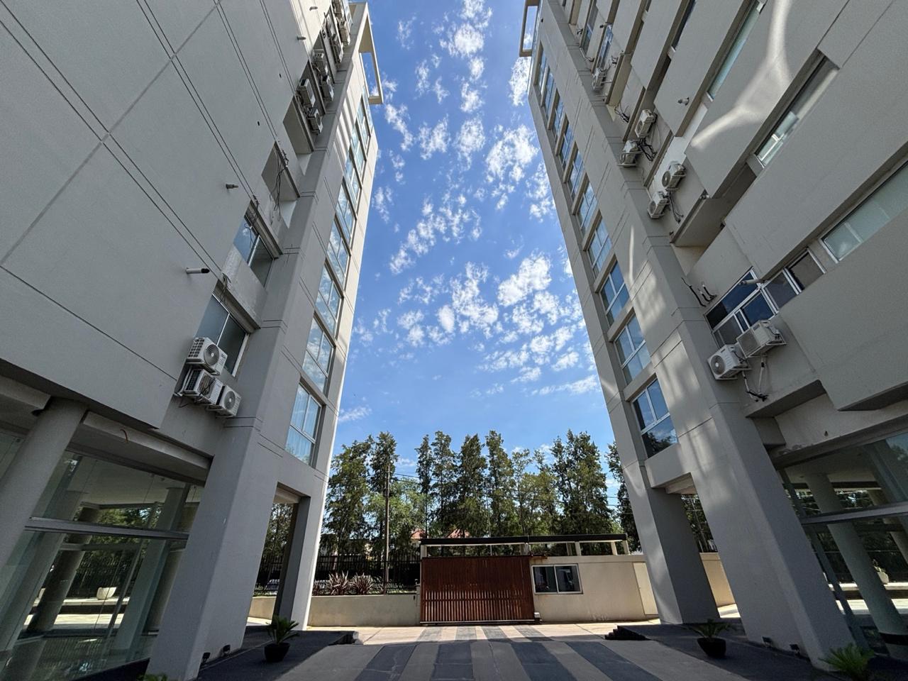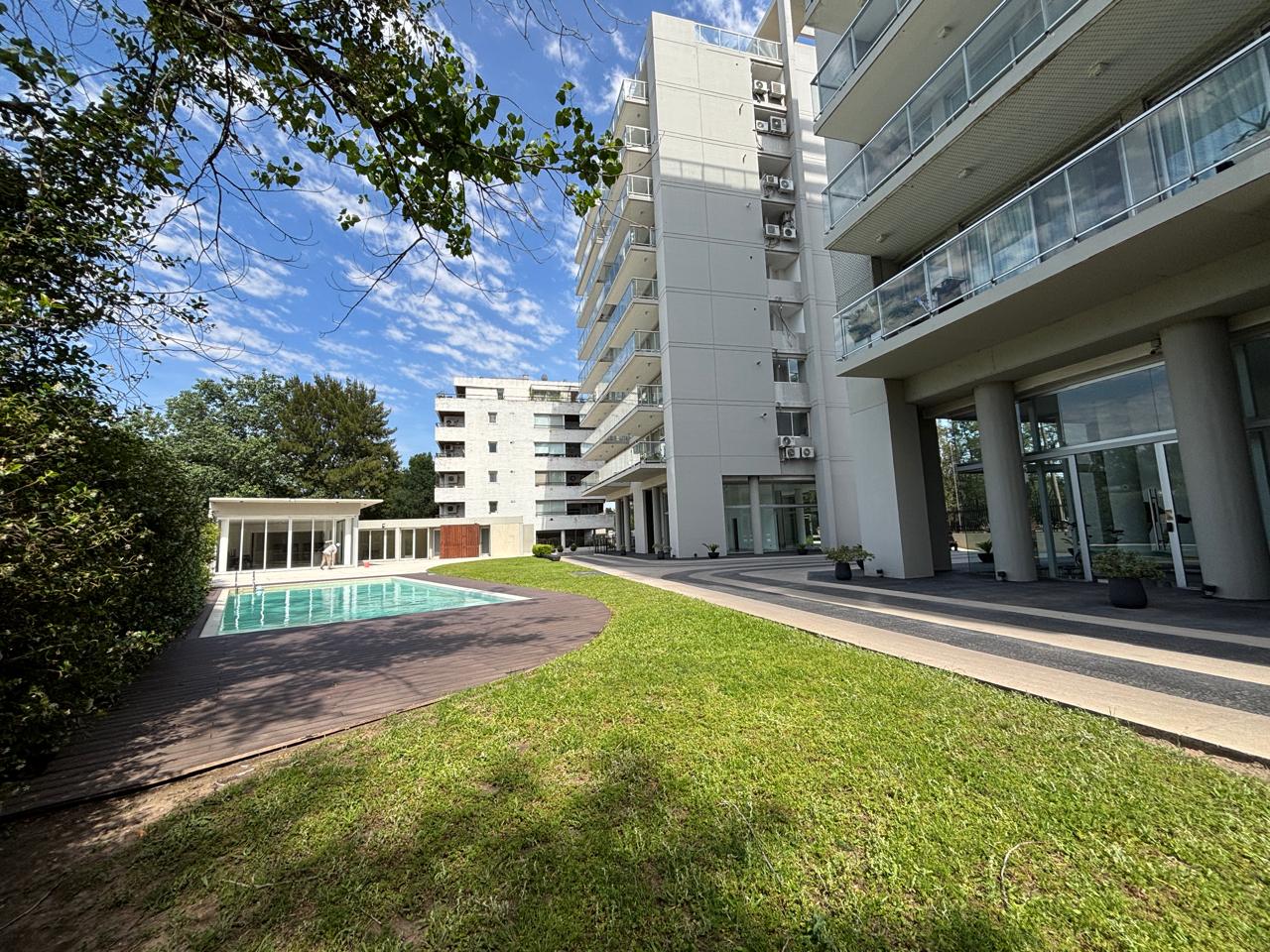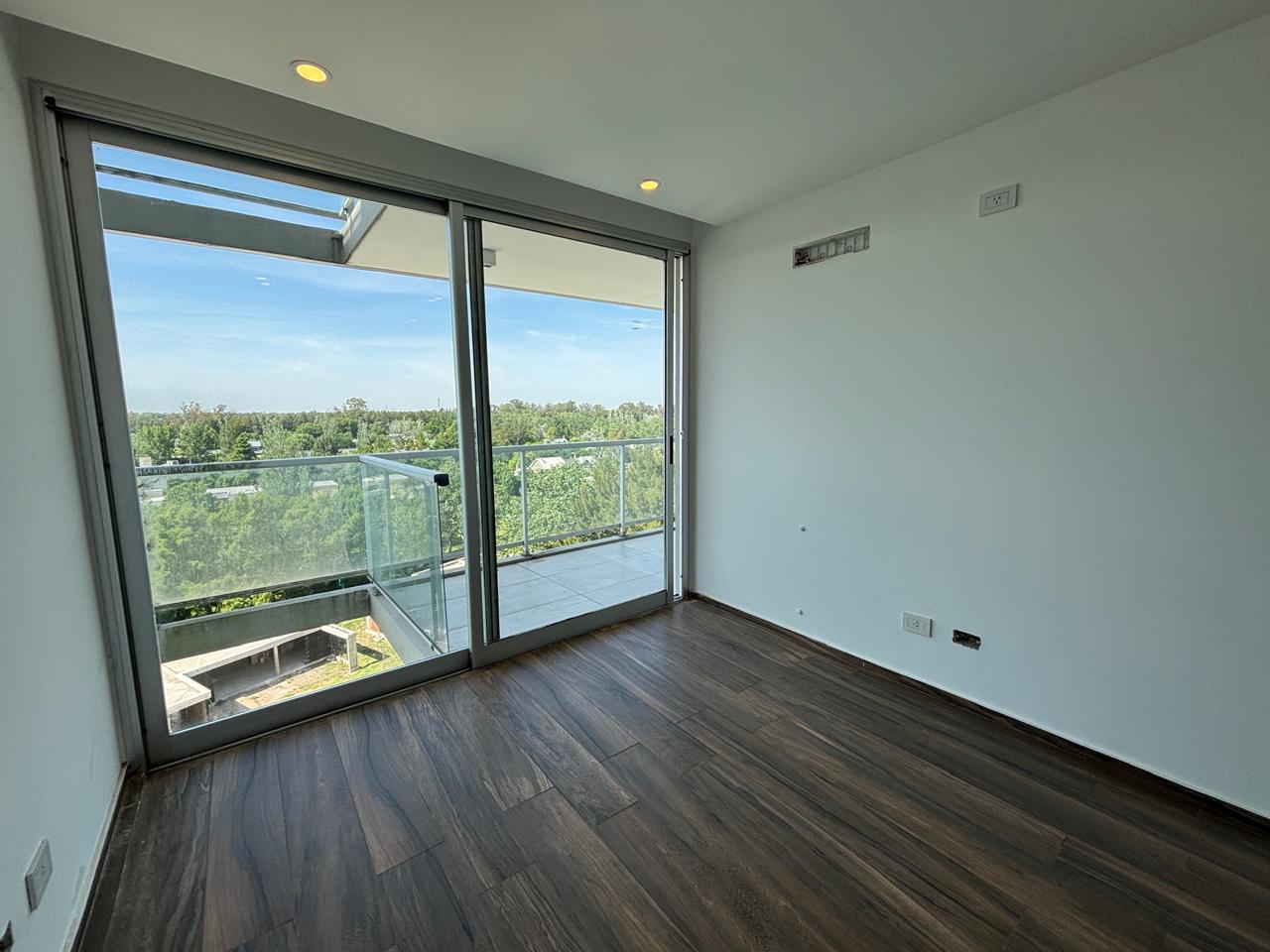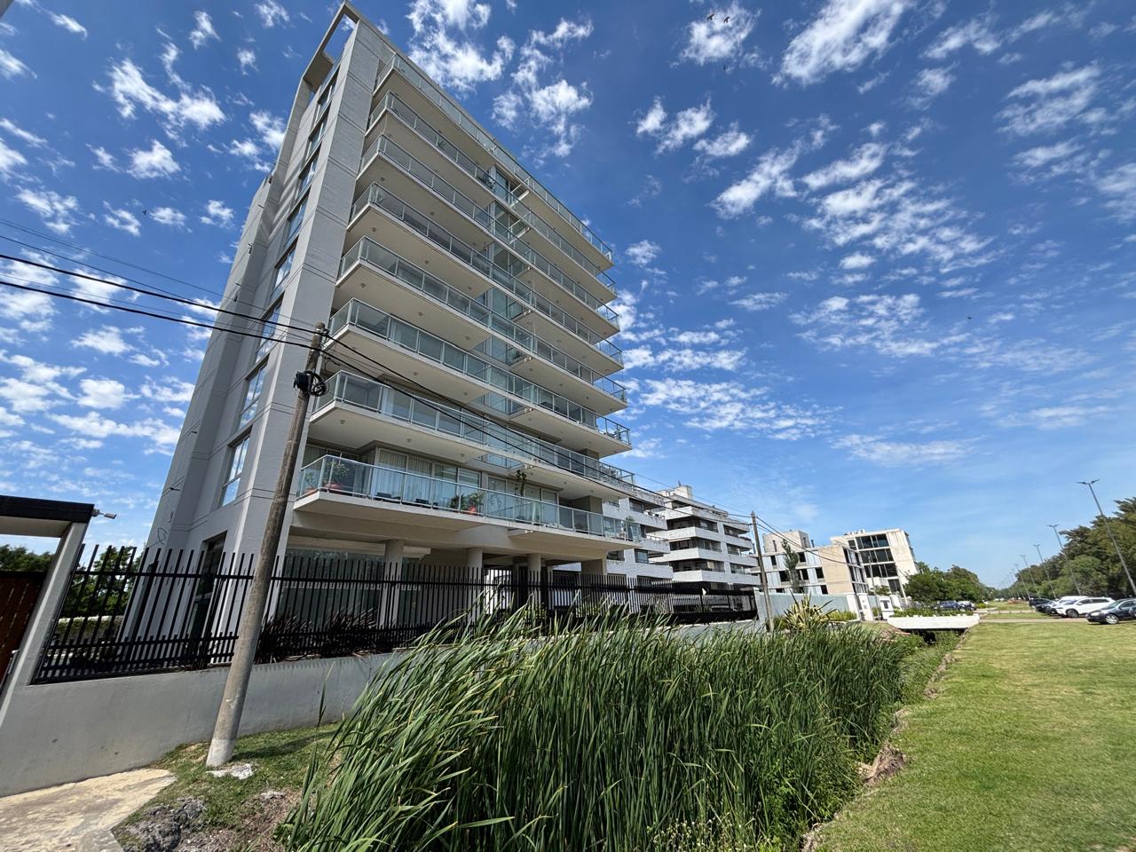 Departamento semipiso, externo con amplio balcón con parrillero orientado al Norte. Vista completamente despejada mirando al barrio cerrado Aldea Lago.