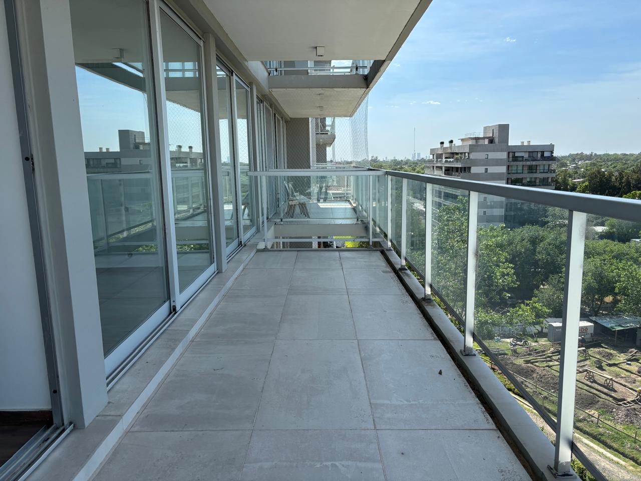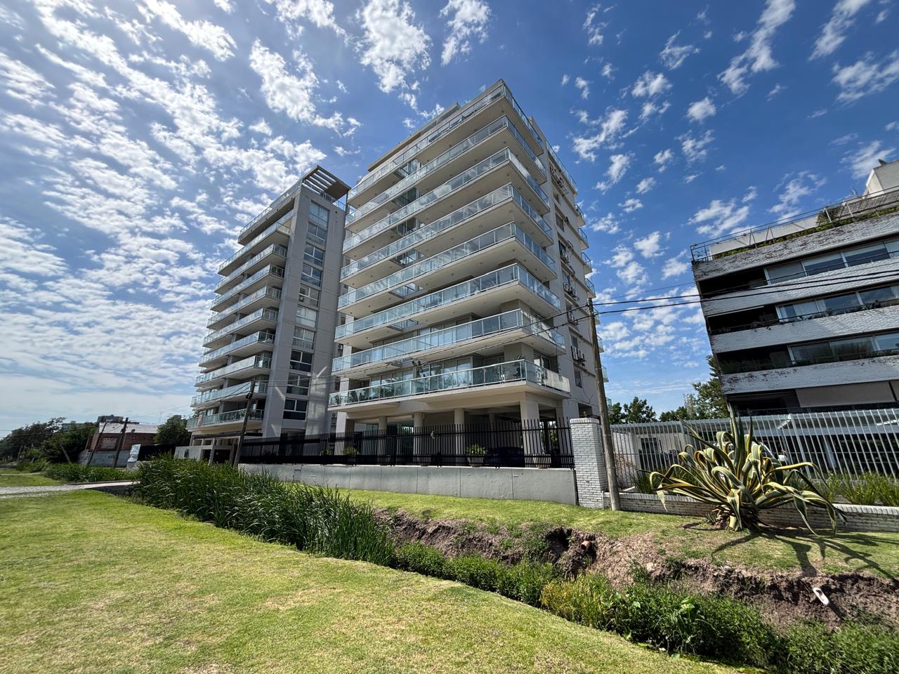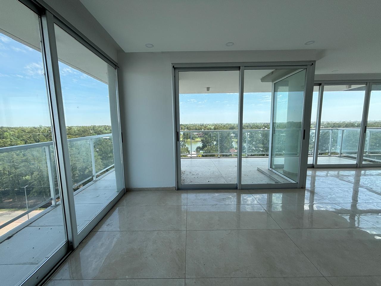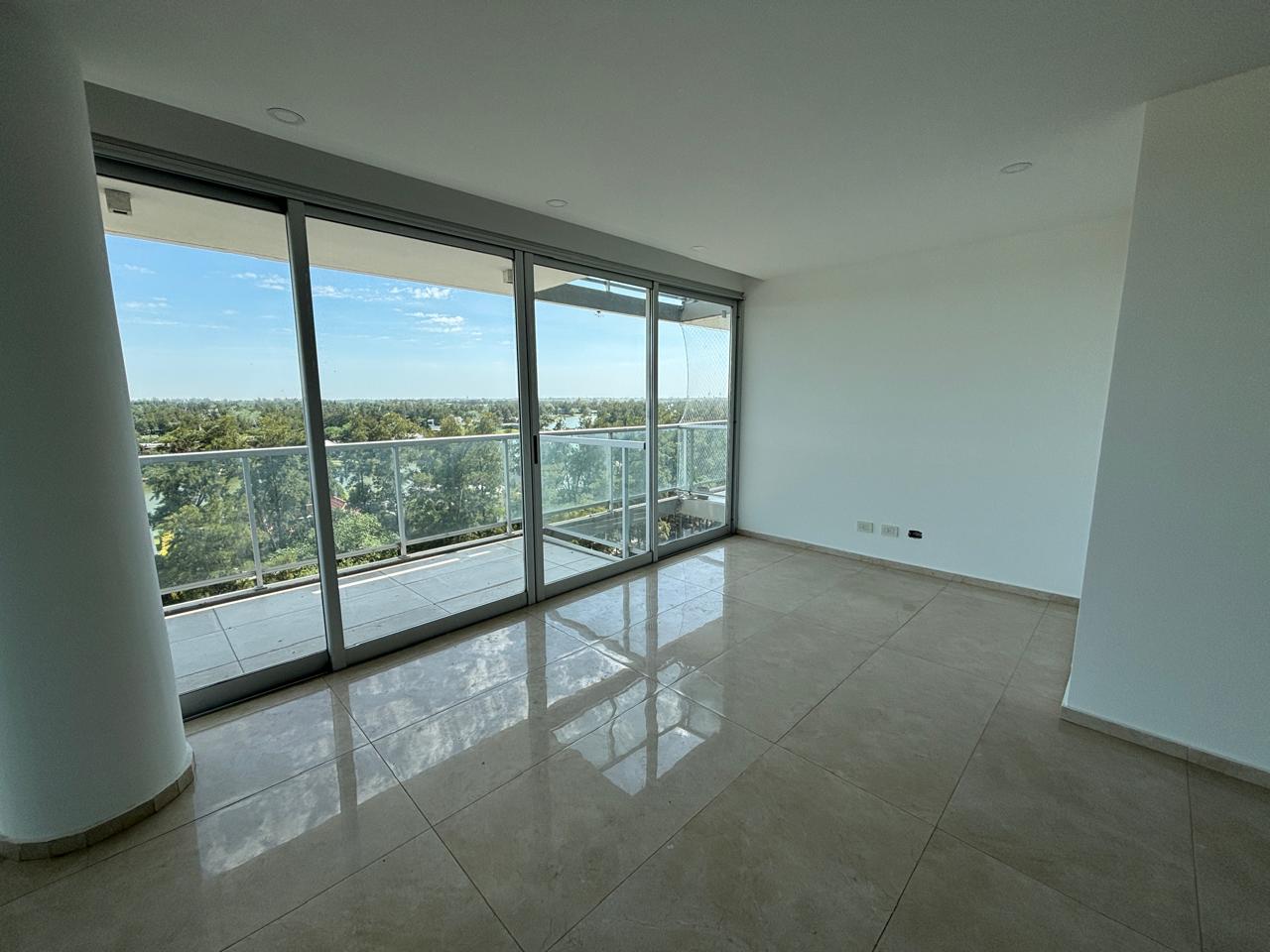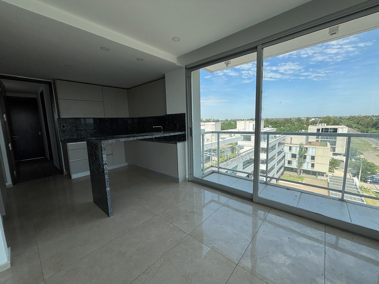 Departamento semipiso, externo con amplio balcón con parrillero orientado al Norte. Vista completamente despejada mirando al barrio cerrado Aldea Lago.