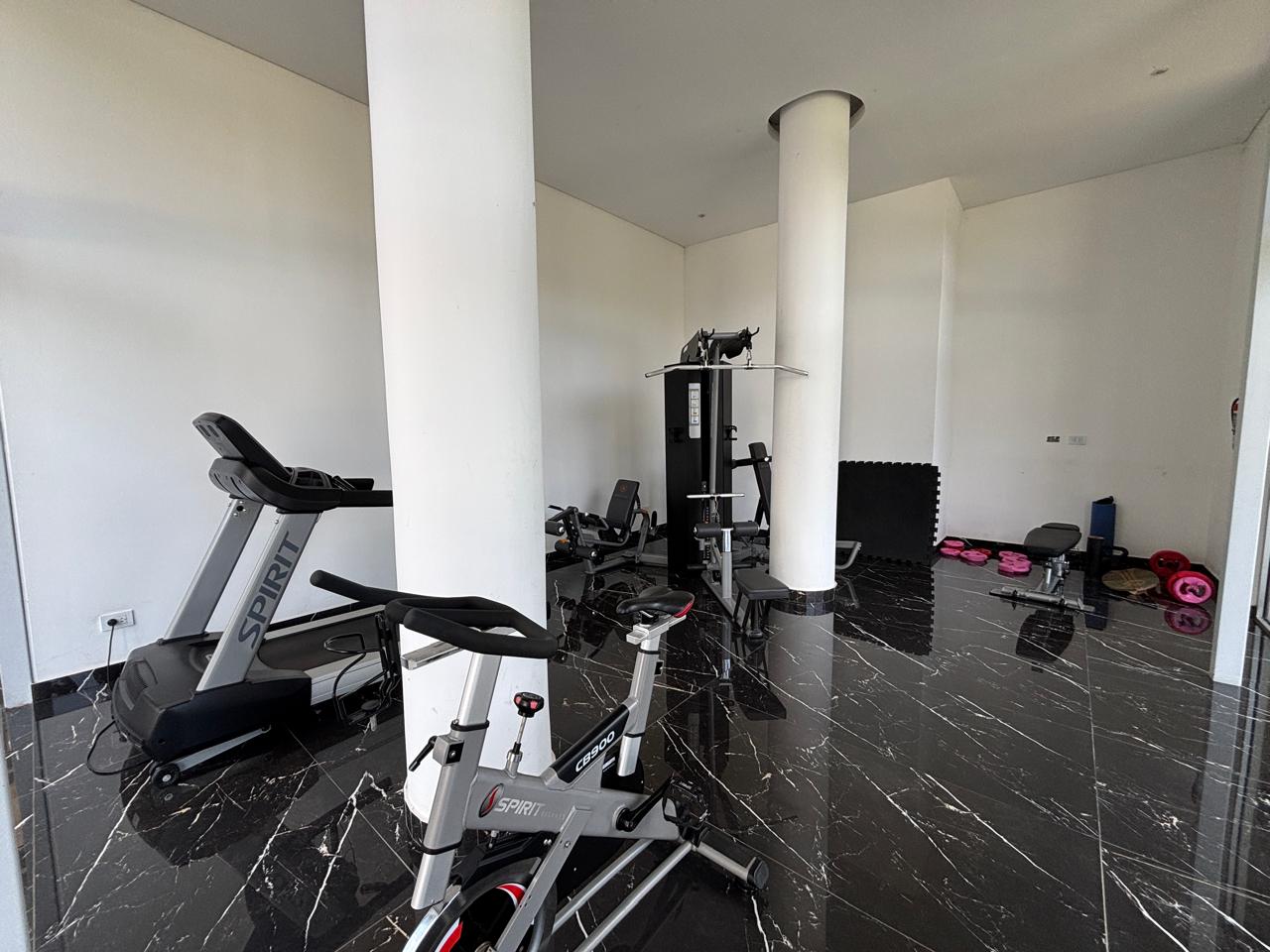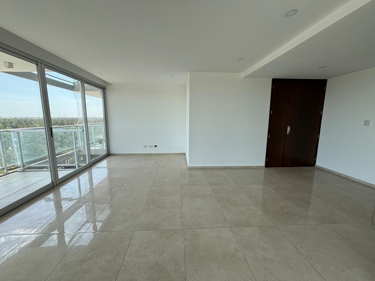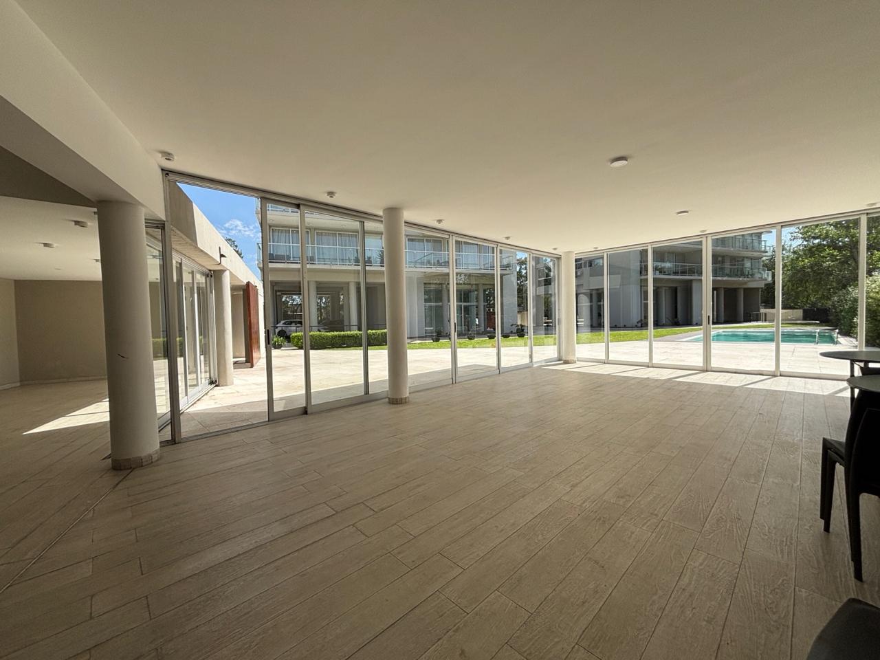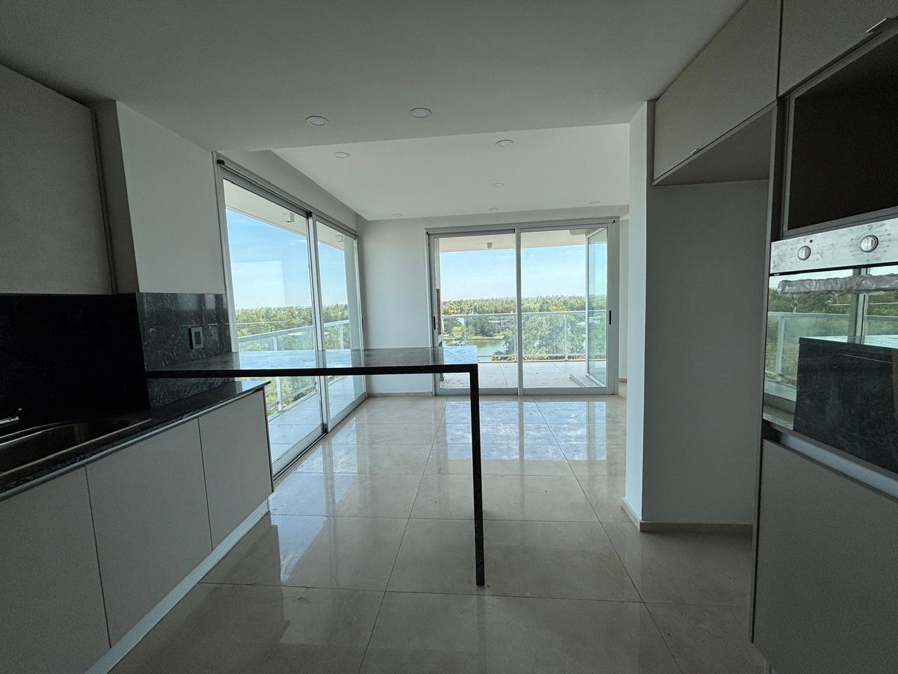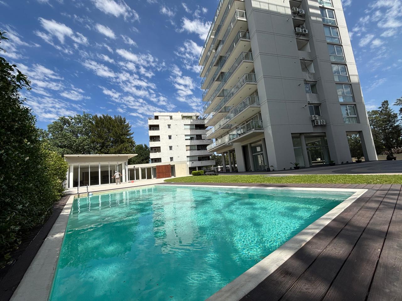Departamento semipiso, externo con amplio balcón con parrillero orientado al Norte. Vista completamente despejada mirando al barrio cerrado Aldea Lago.