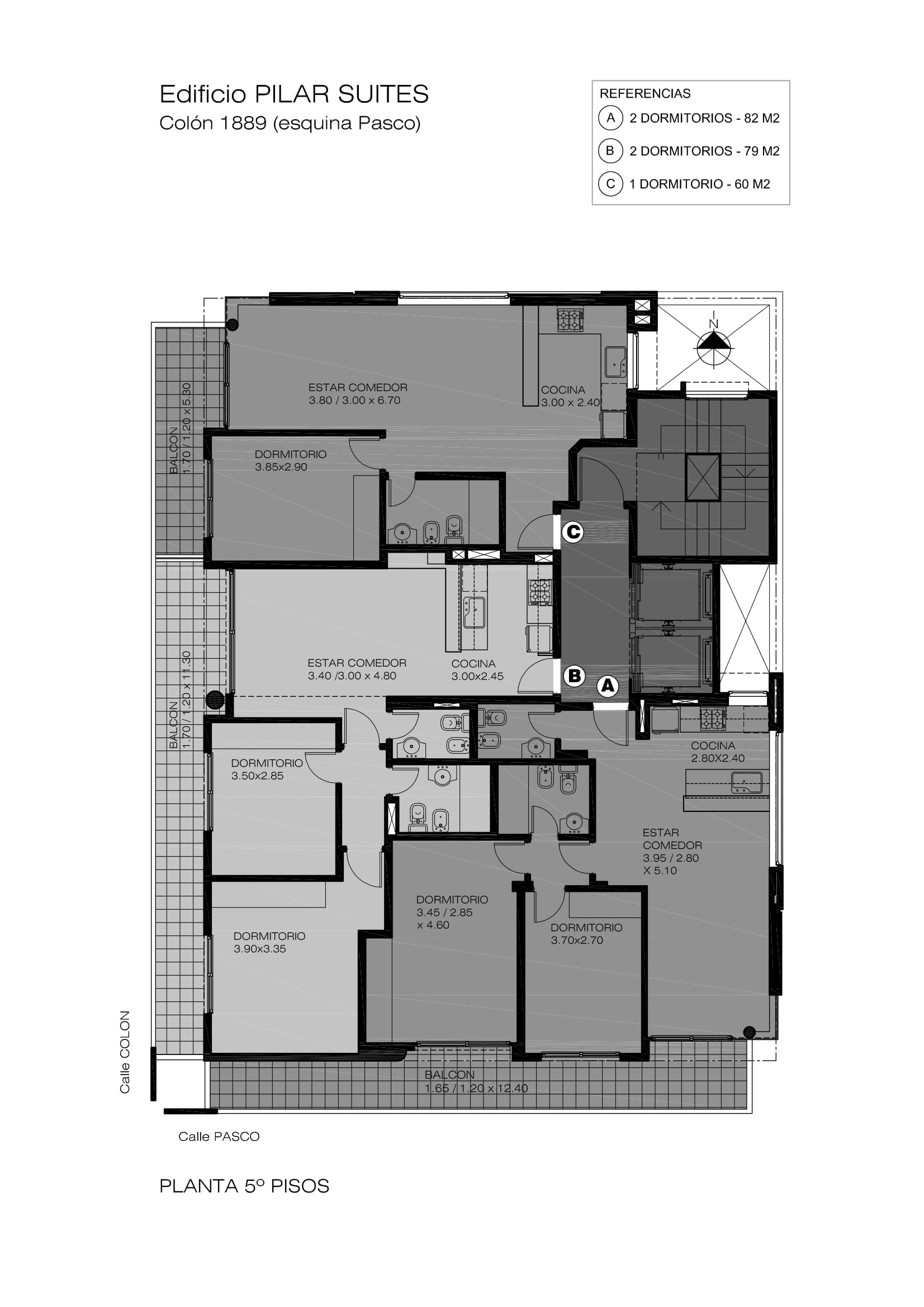 El edificio cuenta con 6 pisos con unidades de uno, dos y tres dormitorios.