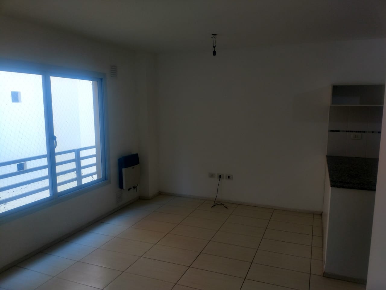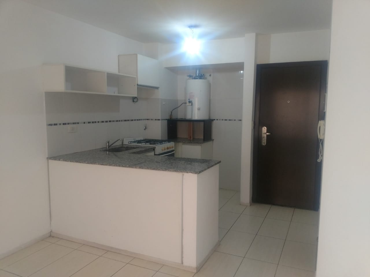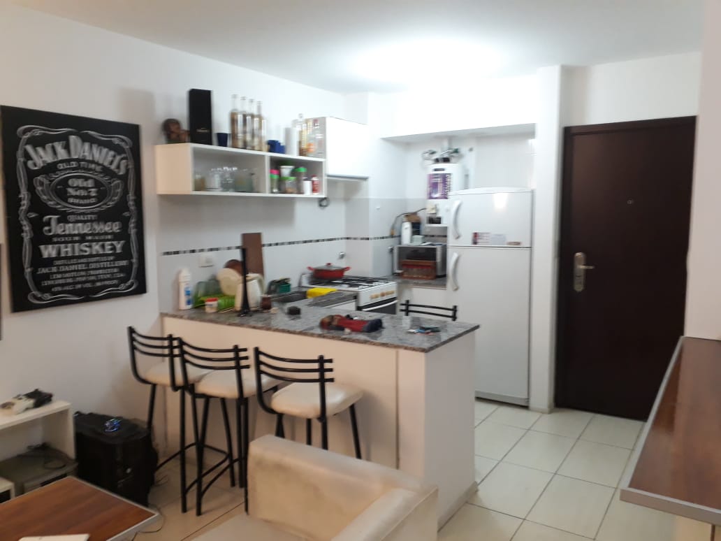 Ambiente único con cocina semi integrada y baño completo.