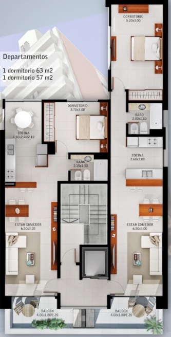 Estar - comedor (6,50 X 3) con cocina semi integrada, amplisimo dormitorio (5,20 X 3) con placard totalmente terminado y baño completo.