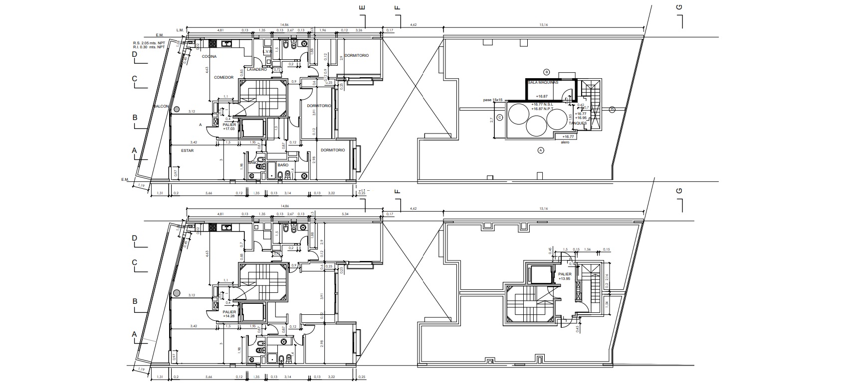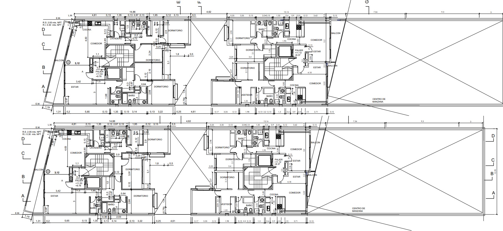 3er. bloque: departamentos tipo dúplex (pb y alta).