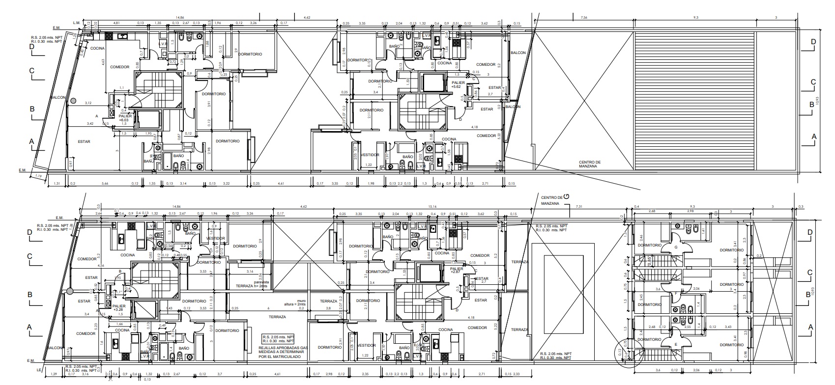 2do. bloque (interno): 4 pisos con semipisos de 2 dormitorios. Si bien se encuentran en el bloque intermedio, la cocina comedor está orientada al Este con vista despejada.