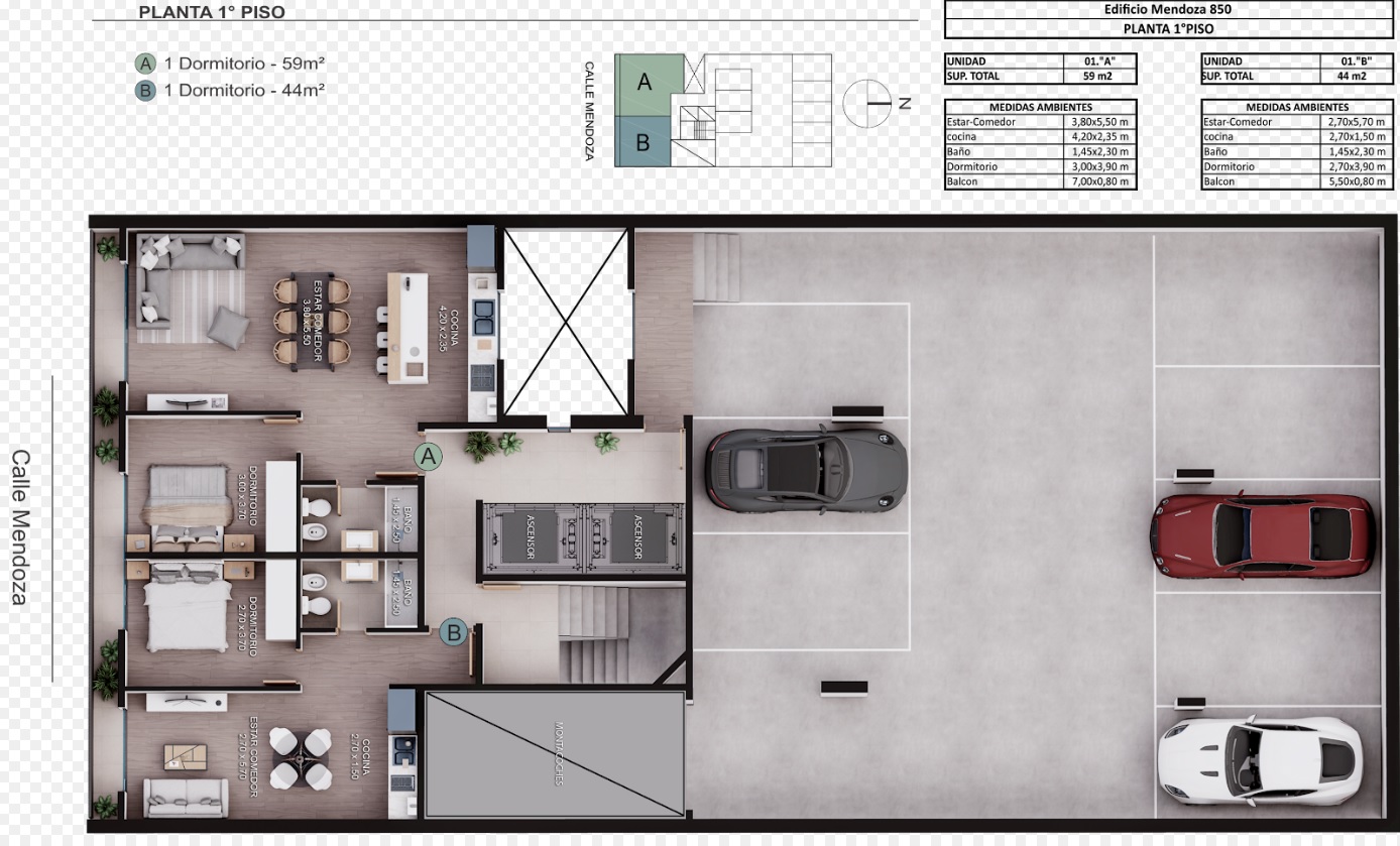 Departamentos de 1, 2 y 3 dormitorios. Posibilidad de terraza propia en unidades de 2 dormitorios y patio en la unidad de 3 dormitorios.