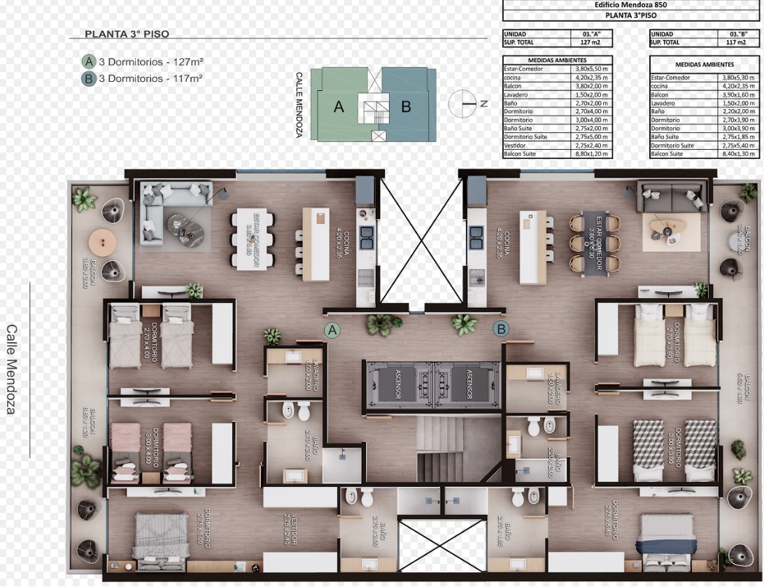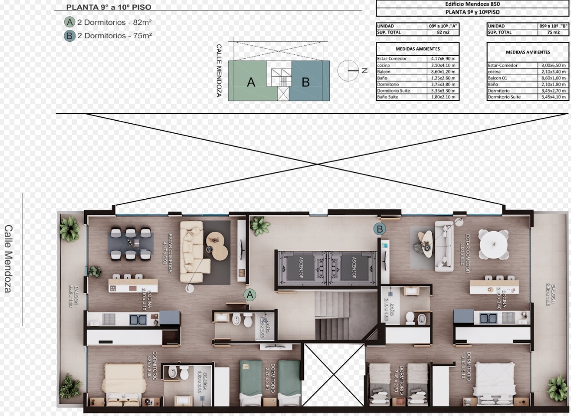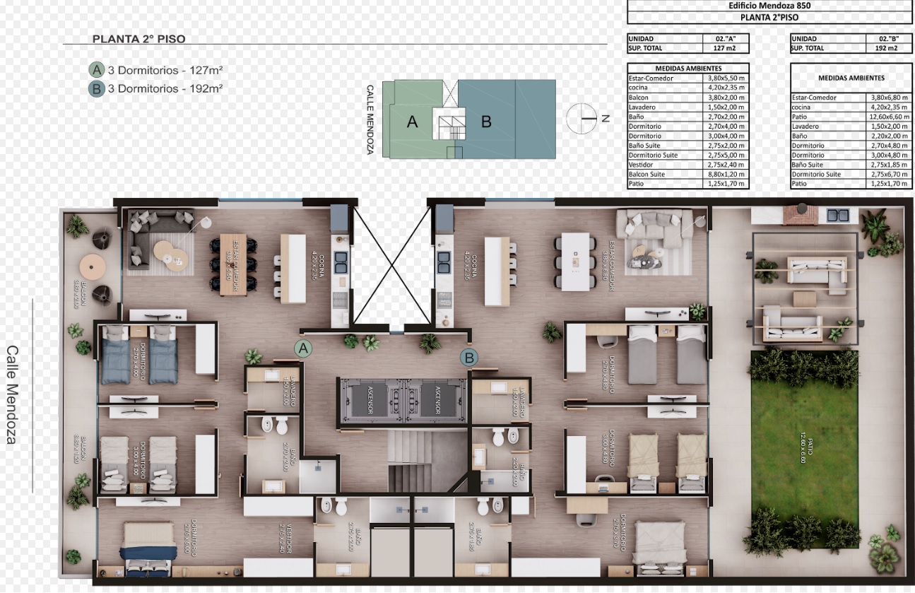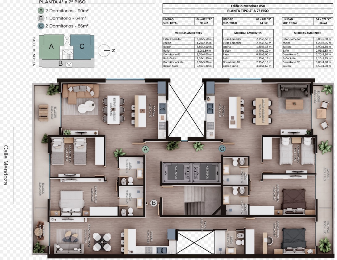 Departamentos de 1, 2 y 3 dormitorios. Posibilidad de terraza propia en unidades de 2 dormitorios y patio en la unidad de 3 dormitorios.