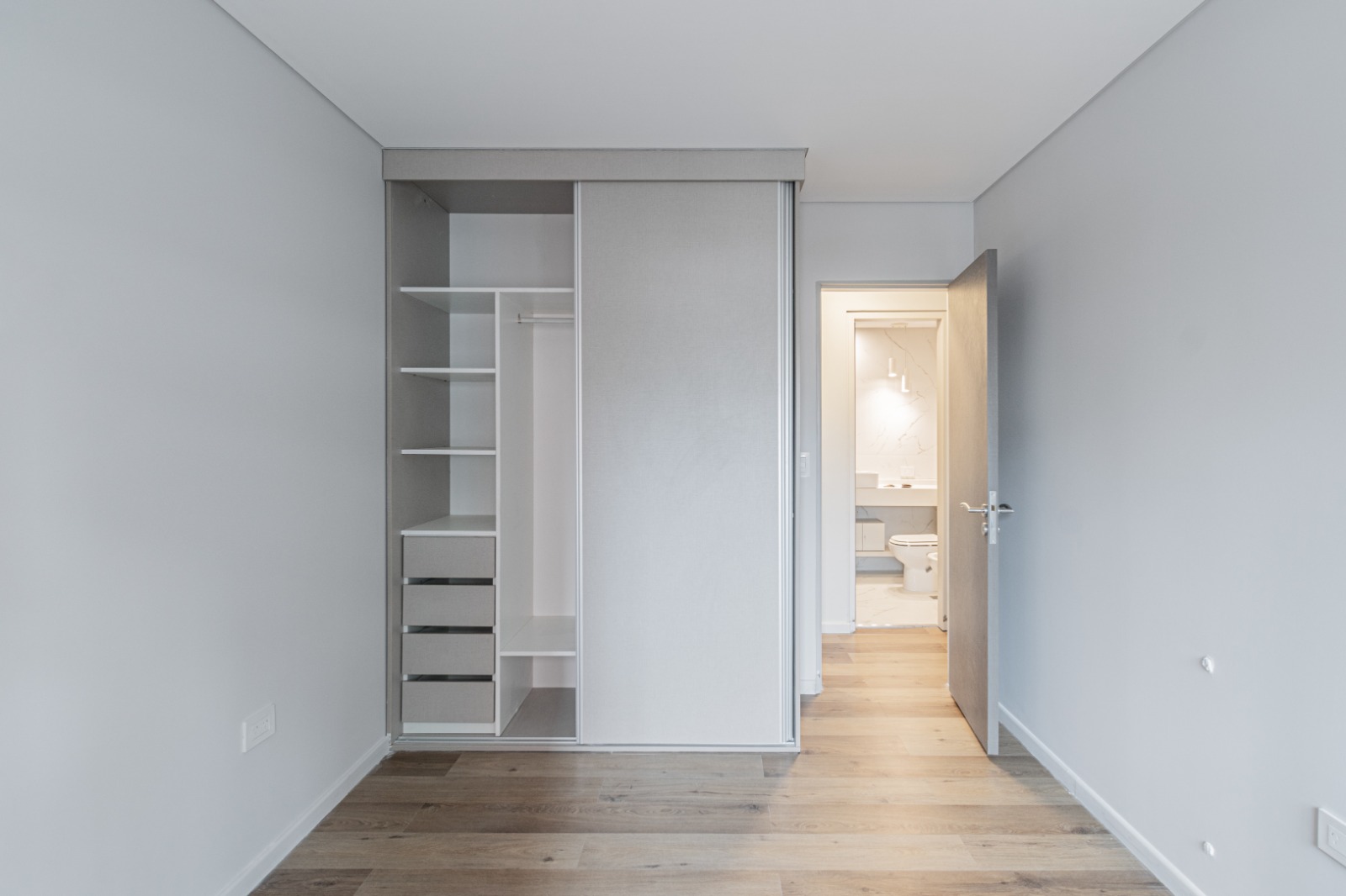 Frente de placares e interiores en MDF laminados.