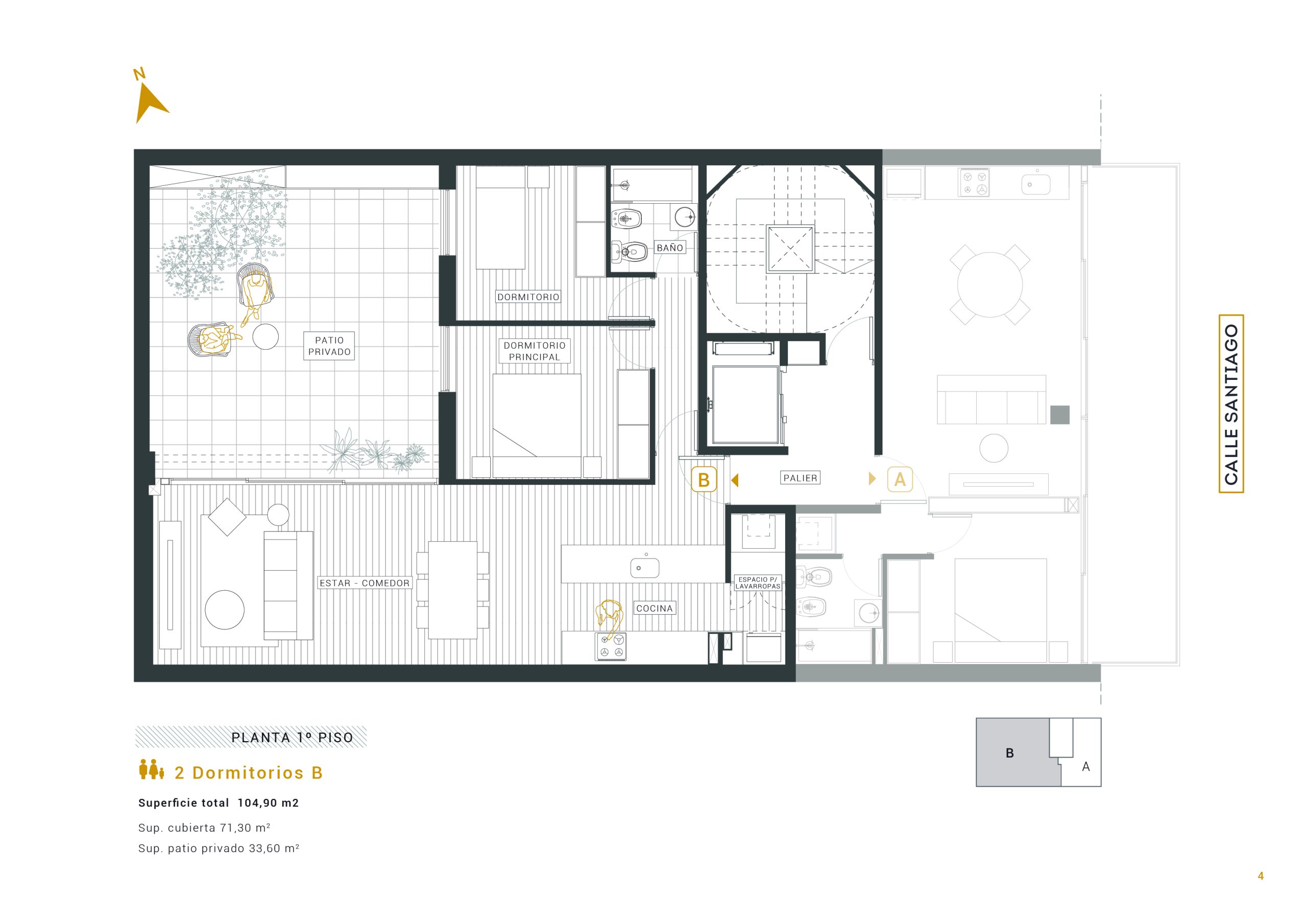 Superficie: 72,80 mts. cubiertos + 32,70 mts. de patio propio.