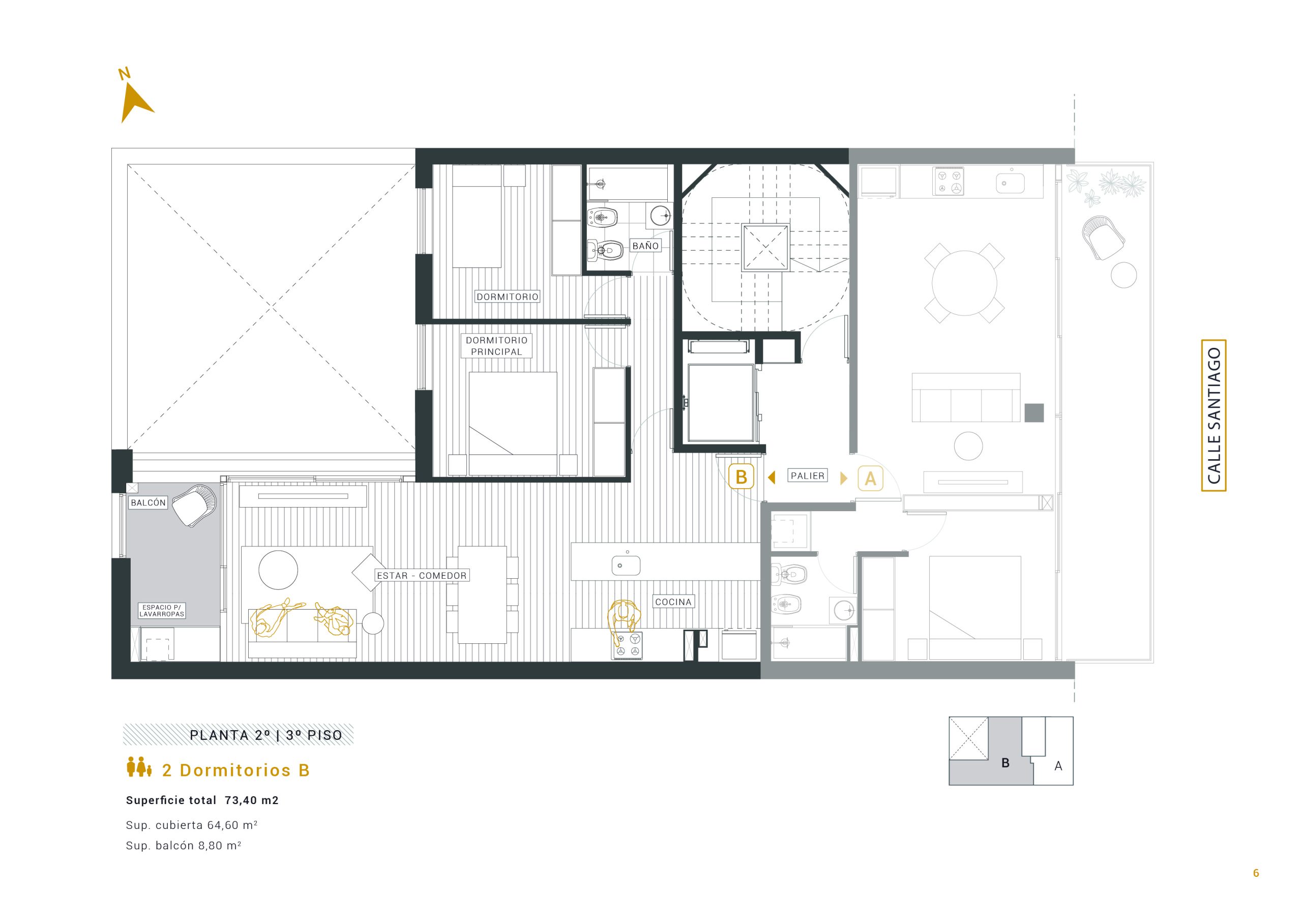 Pisos exclusivos de 3 dormitorios en los pisos 4, 5 y 6.