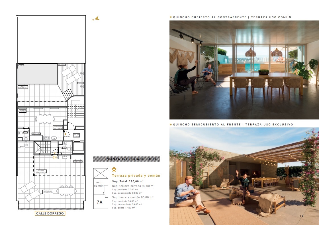 En el último piso se encuentra la azotea de uso común con quincho y pileta.