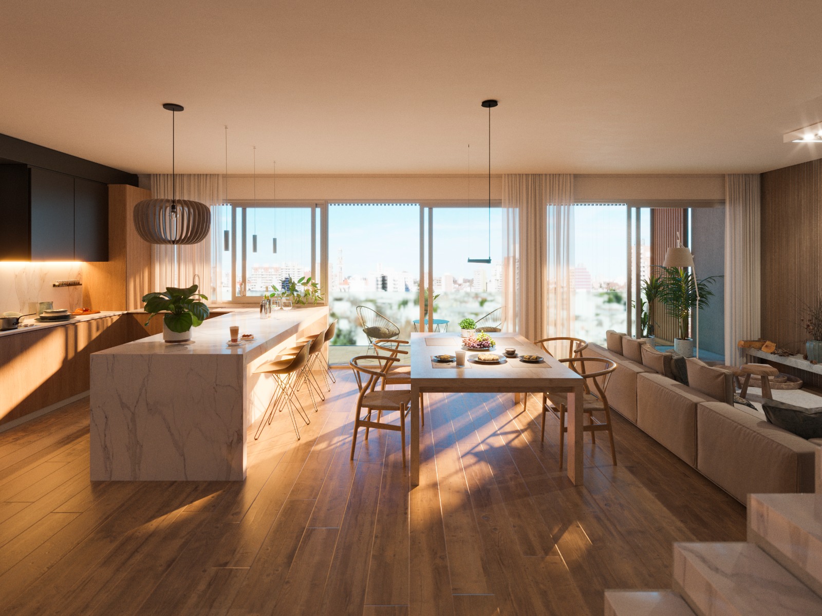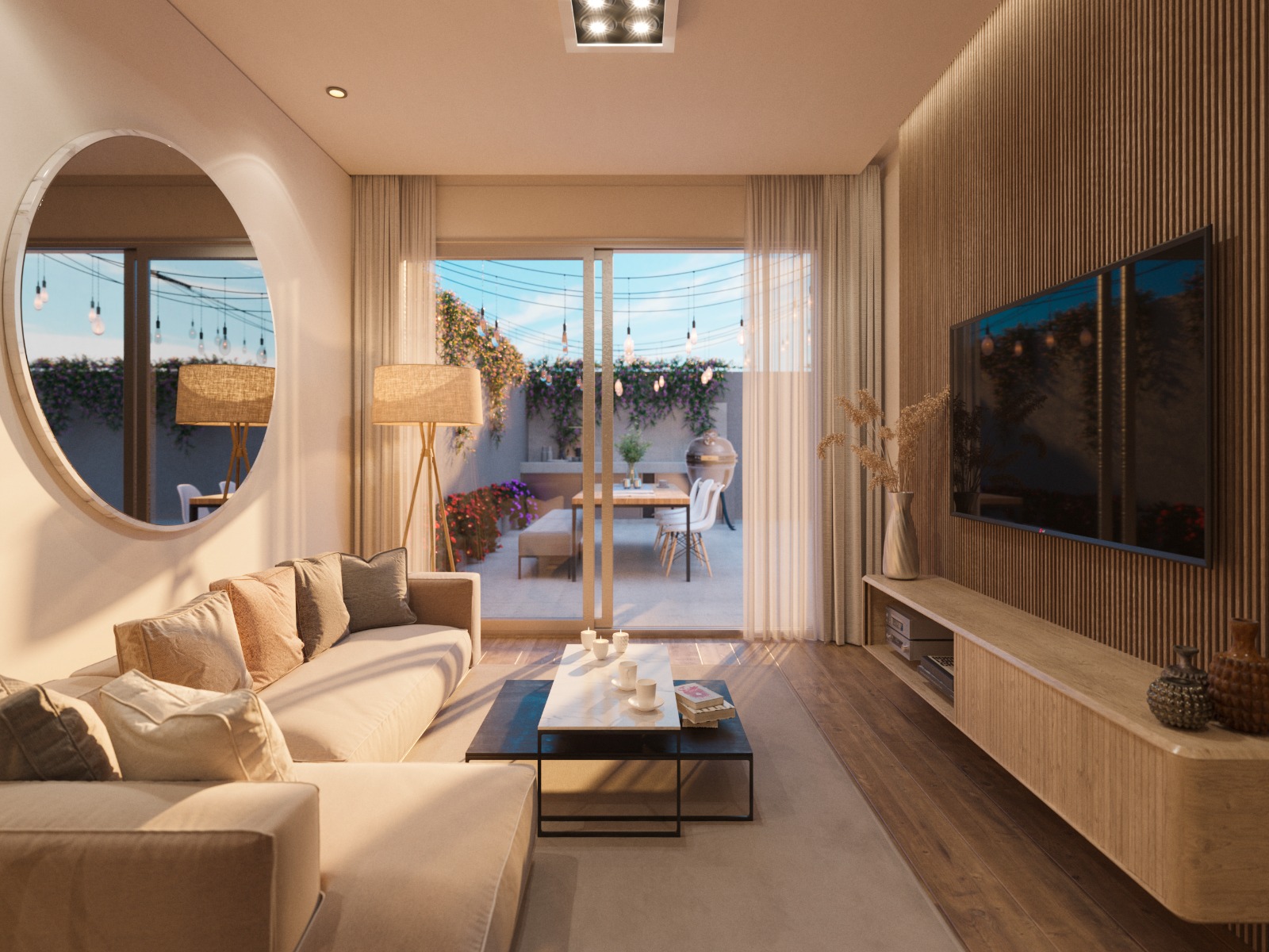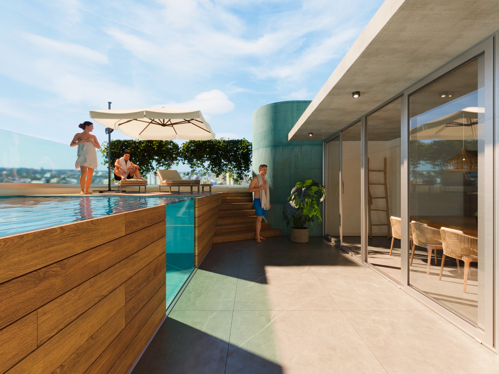 Se desarrollan tipologías de departamentos de 2 y 3 dormitorios, 1 y 2 dormitorios en dúplex, 3 dormitorios en dúplex uno de ellos con terraza de uso exclusivo.