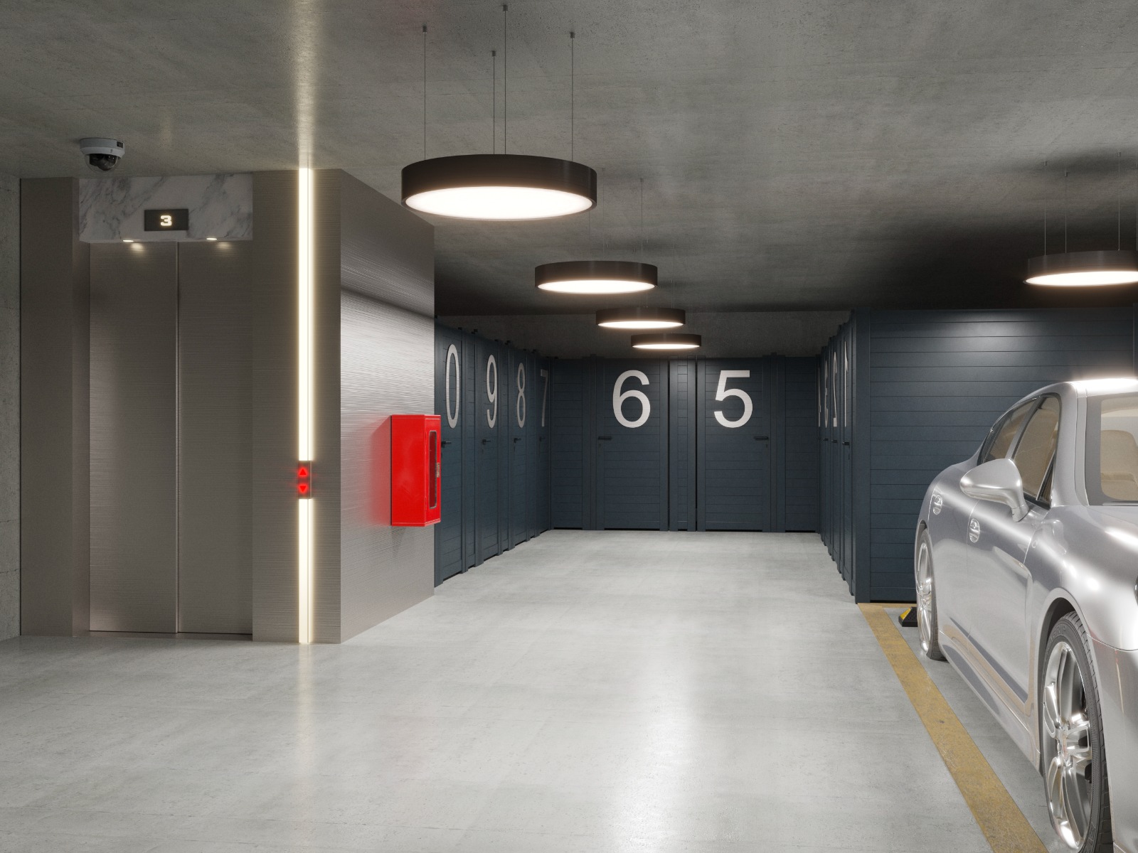 En los dos primeros niveles se distribuyen cocheras simples y dobles y sus correspondientes bauleras individuales , a las mismas se accede por un portón automatizado y un